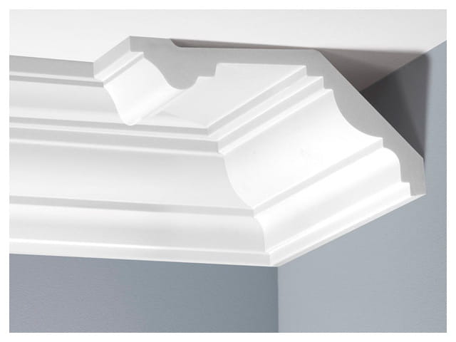 Optymalne proporcje: Bogaty wybór rozmiarów (od subtelnych małych profili po okazałe 20-centymetrowe gzymsy) pozwala na idealne dobranie listwy do wysokości pomieszczenia.