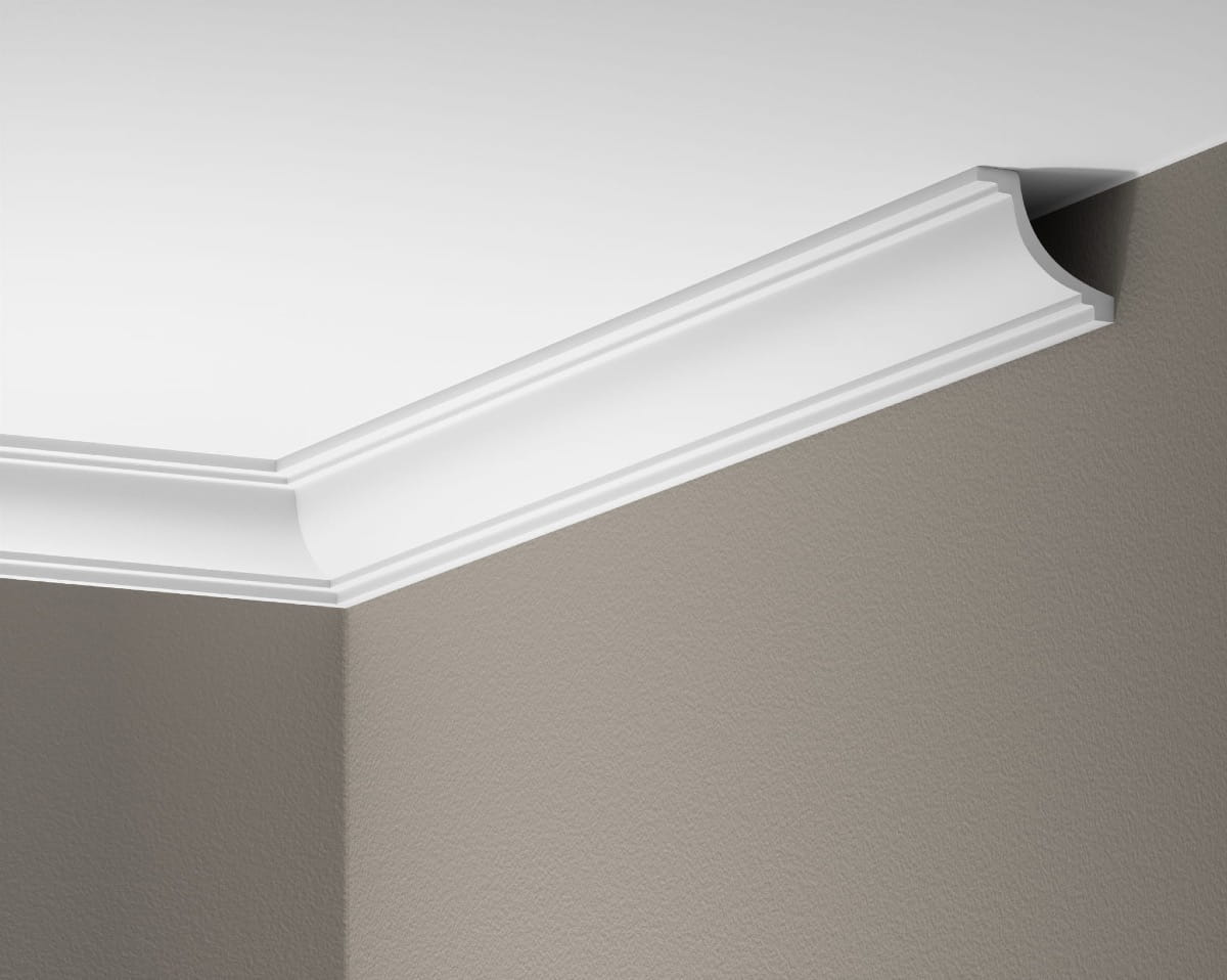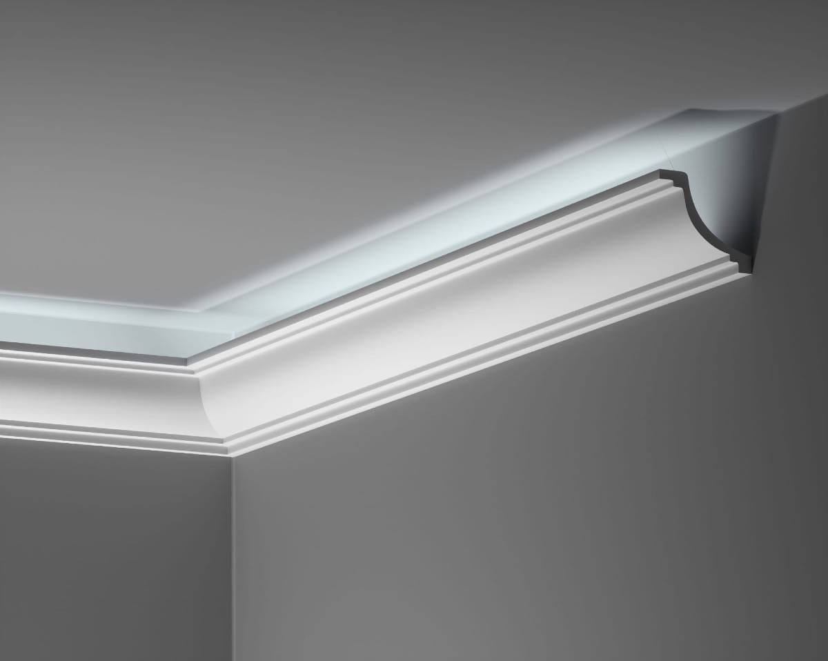 Elegancki, klasyczny wygląd z delikatnym zdobieniem sprawia, że listwa idealnie sprawdza się jako subtelne, lecz wyrafinowane wykończenie styku ściany i sufitu w każdym pomieszczeniu – od łazienek po salon.